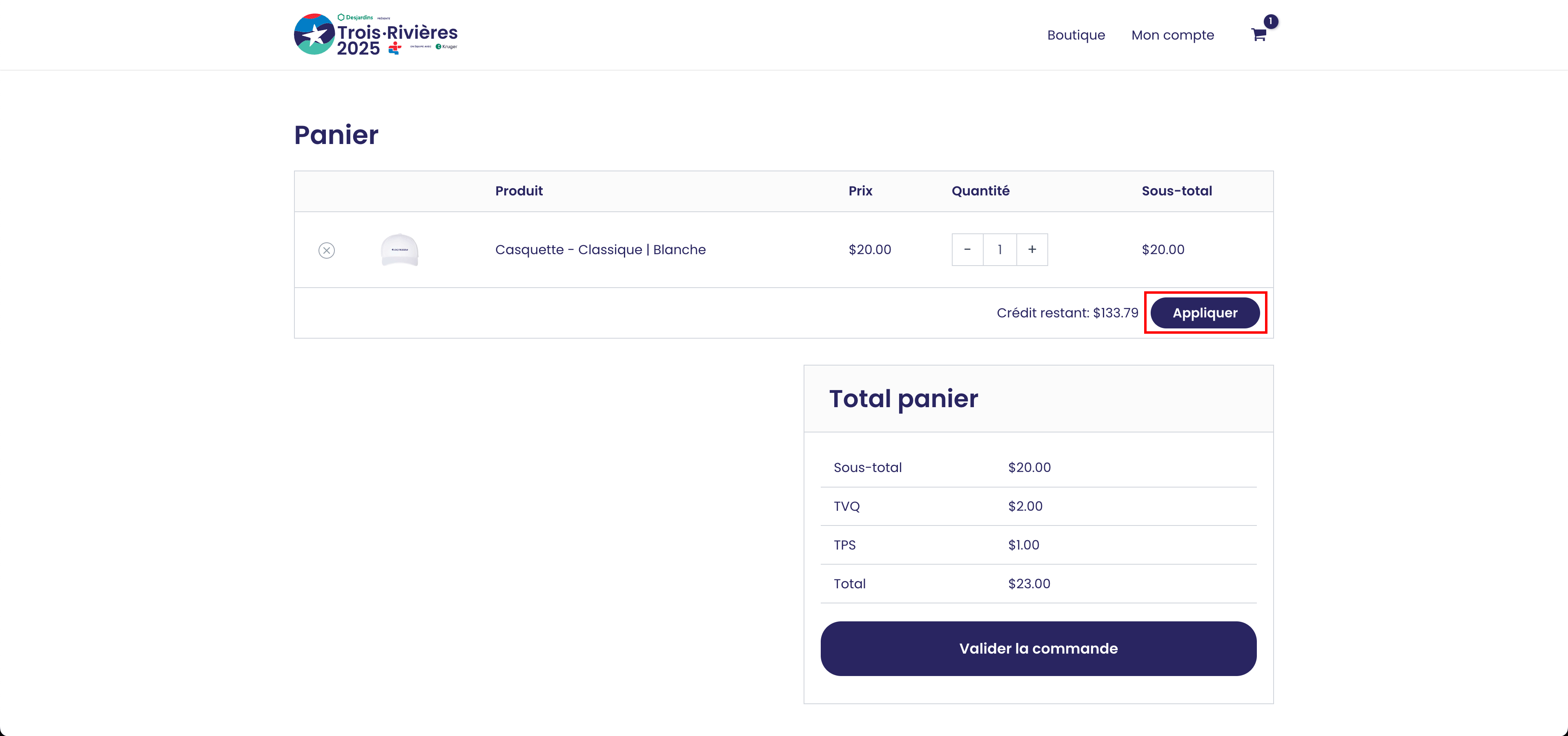 • NOTE IMPORTANTE : Si vous ajoutez des articles à votre panier après avoir appliqué le crédit, il est essentiel de retirer le crédit et de le réappliquer une fois votre panier mis à jour.